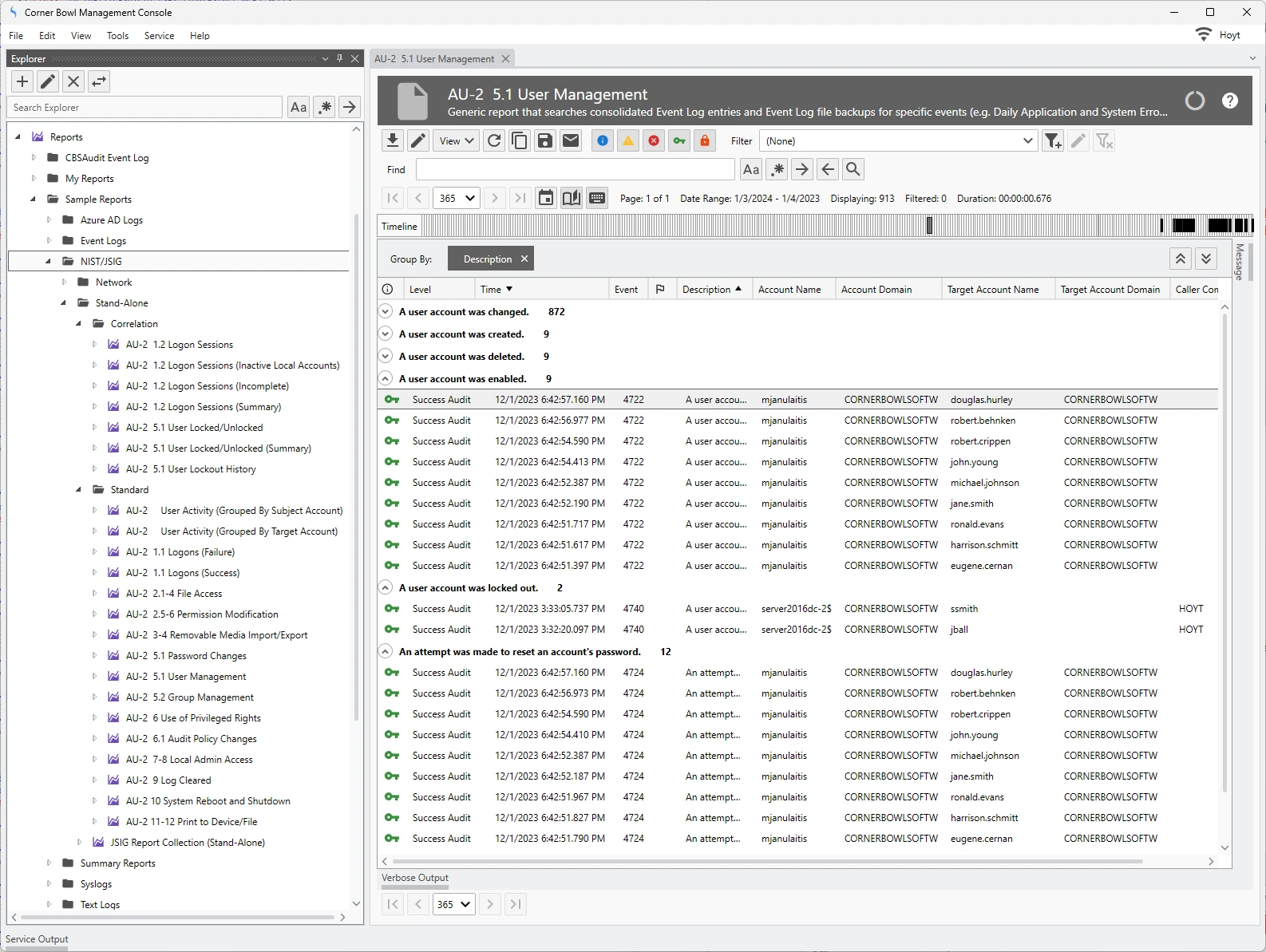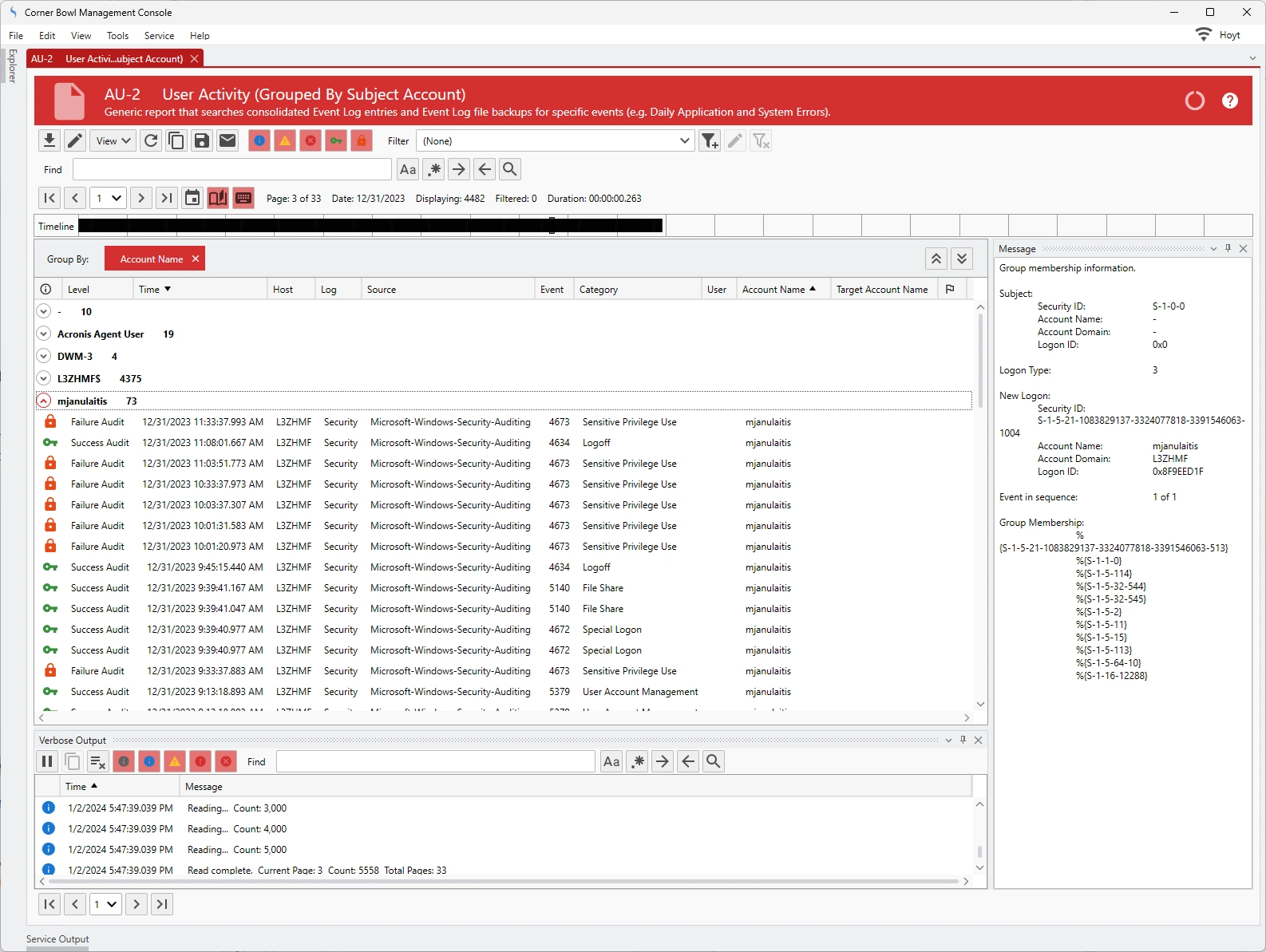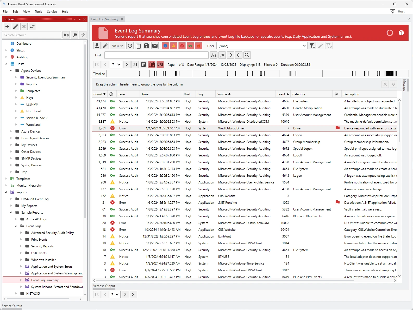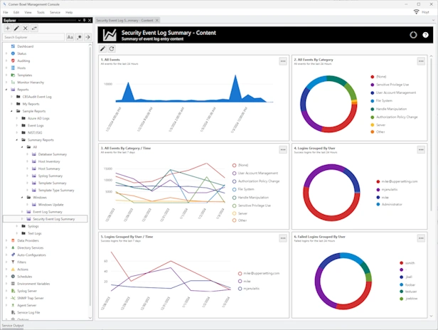 Manage Azure, Windows, Linux, Red Hat, CentOS, Ubuntu and network hardware logs. Agent-based and agentless options for Windows and Linux. Batch Import and Audit Windows Event Log Files for CMMC and JSIG Compliance.