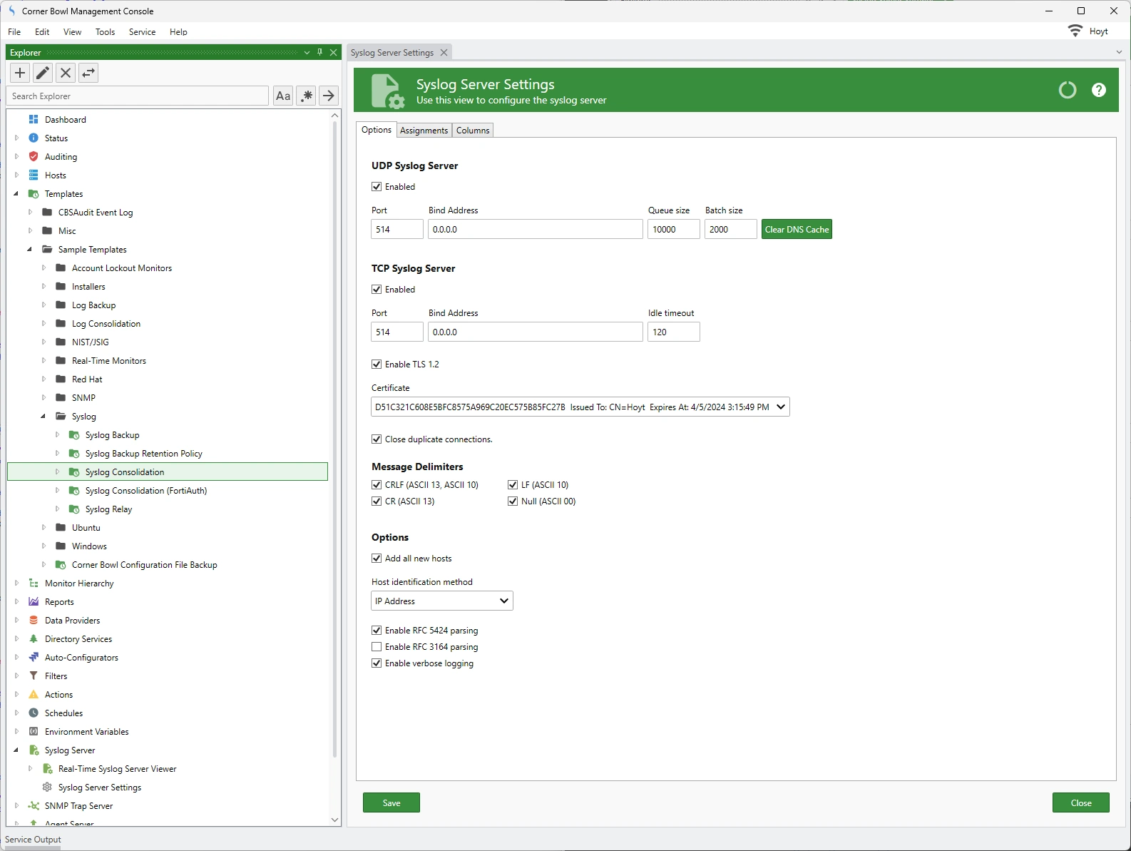 Centrally manage all of your hardware devices with our high throughput UDP and TCP Red Hat, CentOS, Ubuntu and Windows Syslog servers.