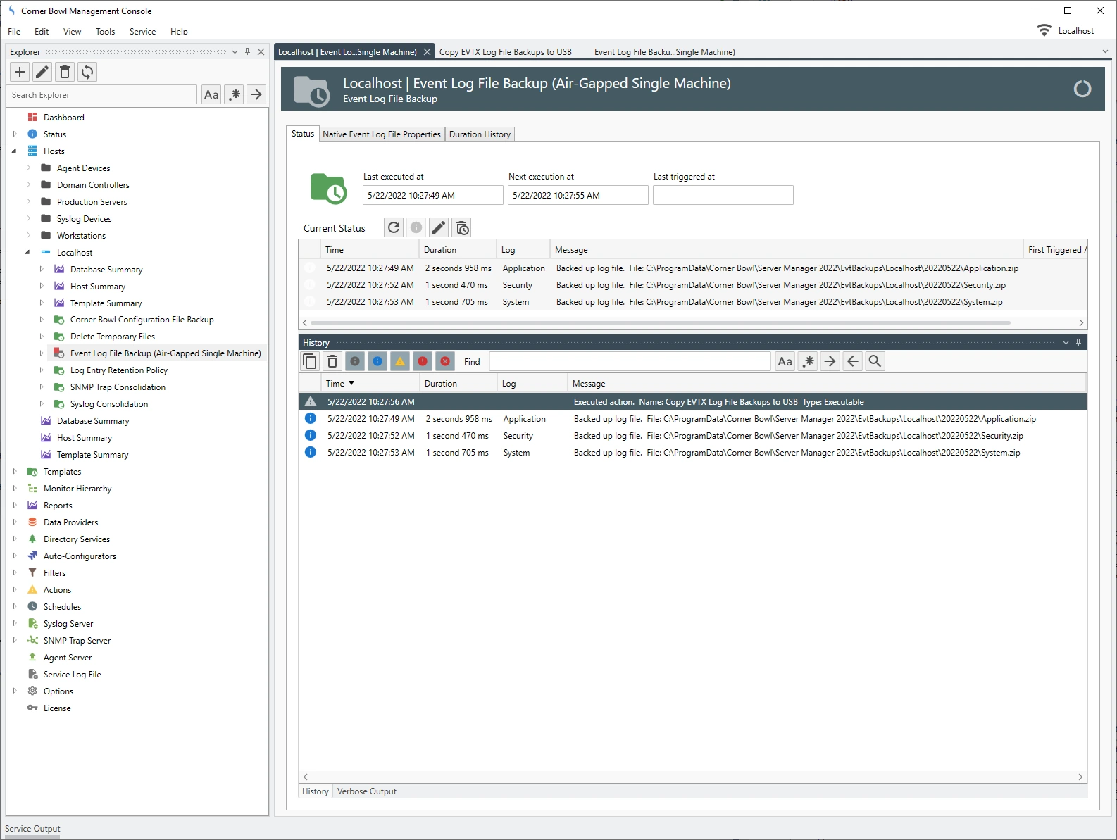 the Event Log File Backup (Air-Gapped Single Machine) template saved the logs