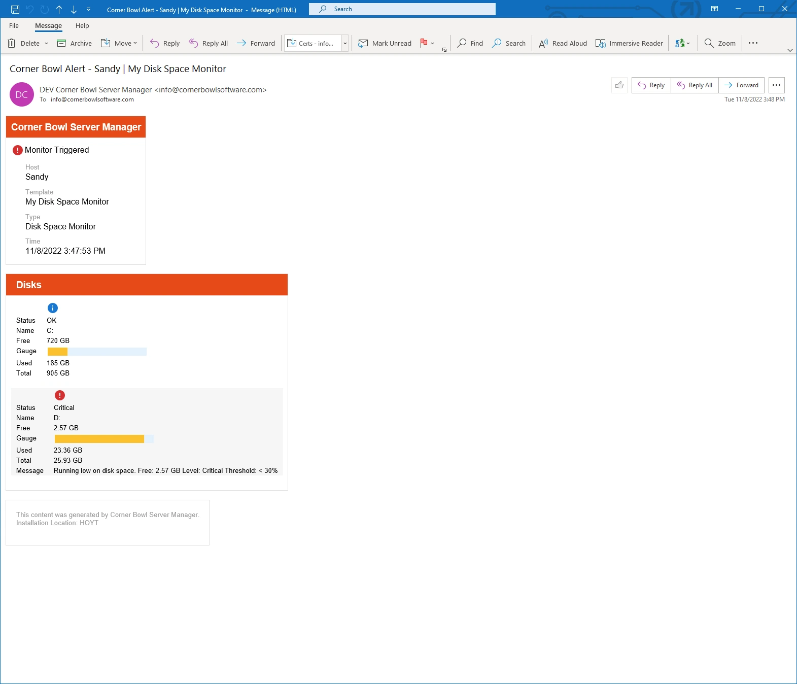 Disk Monitoring and Reporting with Corner Bowl Server Manager