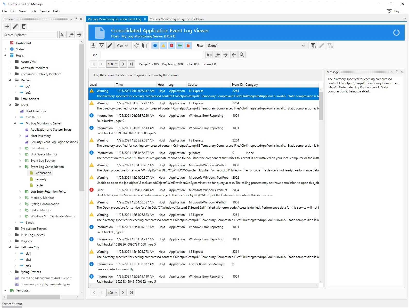 In this article I am going to show you how to configure Corner Bowl Log Manager to consolidate Event Log entries from various servers to a central SQL Server database.