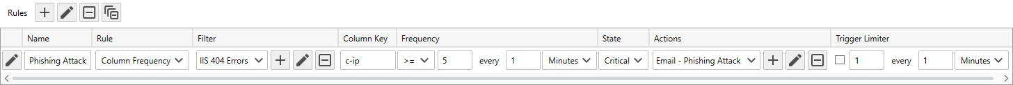 button. A new line item is added to the Rules Table. - Use the Name text box to specify an informational name for the new rule, for example Phishing Attack.