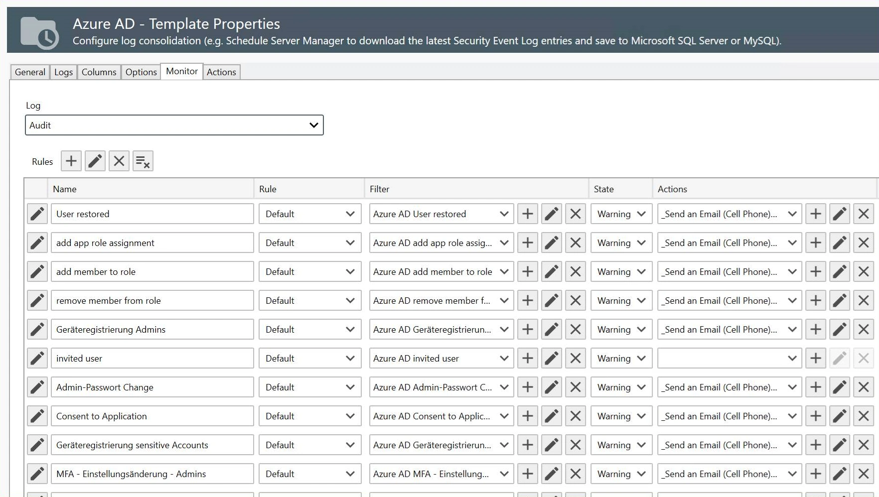 What we are monitoring are events like: admin logon failures, locked accounts, admin consent to applications, users restored, app role assingments, add/remove member to/from roles, device registration for administrative accounts, admin password changes, multi factor authentication setting changes for administrative accounts, etc. Especially the monitoring of changes in administrative accounts and multi factor settings is critical and very valuable for us. We are a small team with full access rights and we all get immediately E-Mails from Corner Bowl when something happens here with our administrative accounts, like getting a new or additional mobile phone in place or changes in multi factor authentication settings like adding a method (Authenticator, telephone number, …) so that we immediately inform our collegues, yes, that´s OK, it´s me.