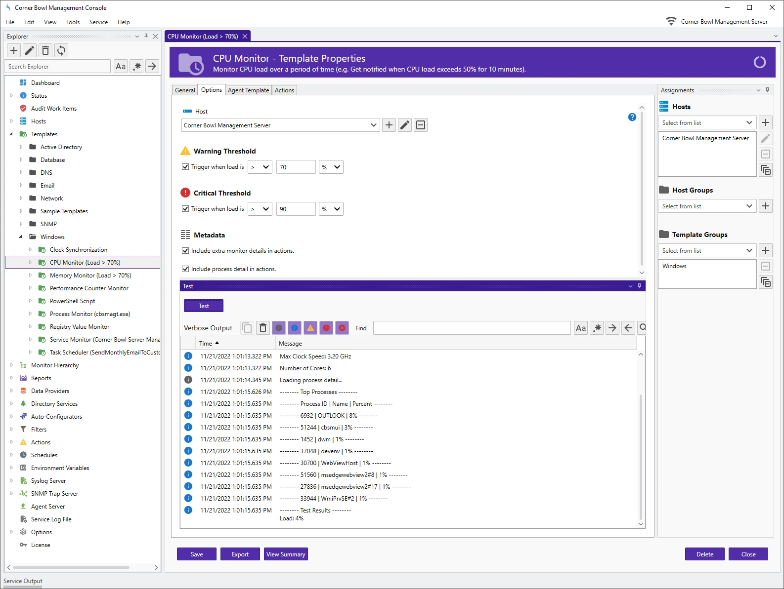 Monitor CPU load over a period of time (e.g. Get notified when CPU load exceeds 50% for 10 minutes).