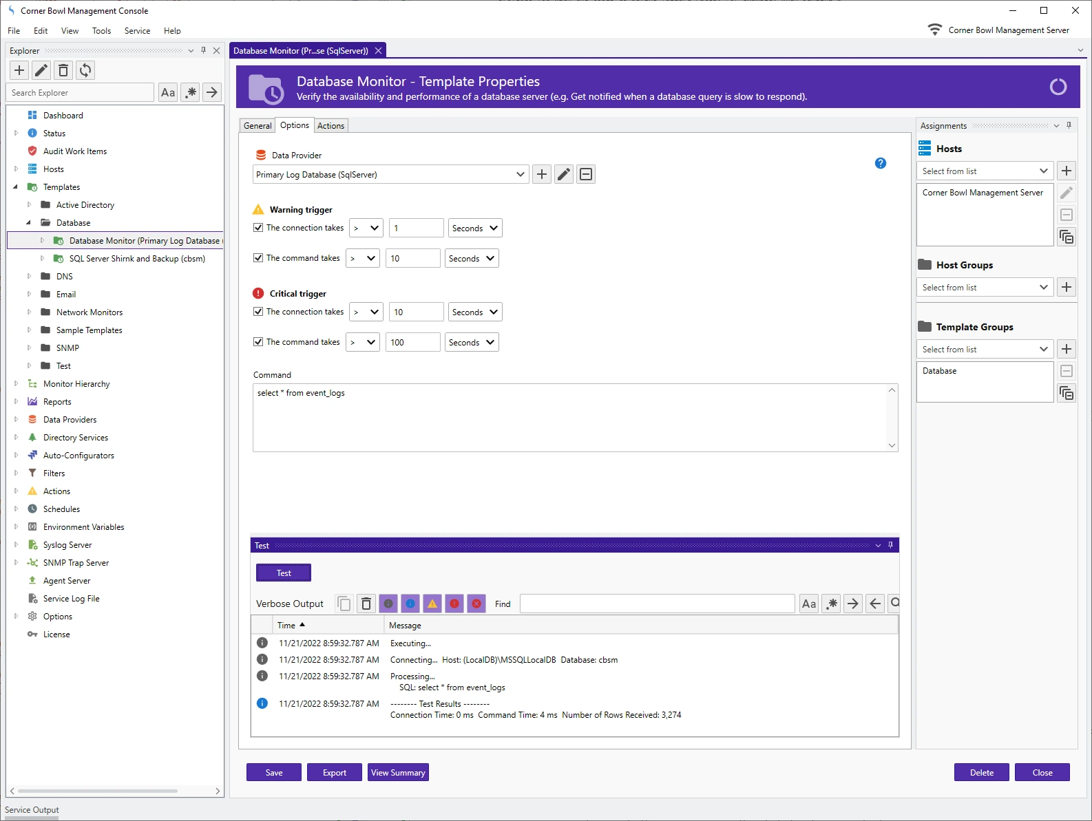 Verify the availability and performance of a database server (e.g. Get notified when a database query is slow to respond).