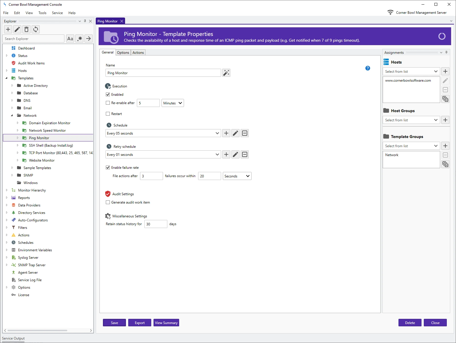 - Supports failure rates (e.g. Trigger ping alerts after 3 failures occur in 20 seconds).