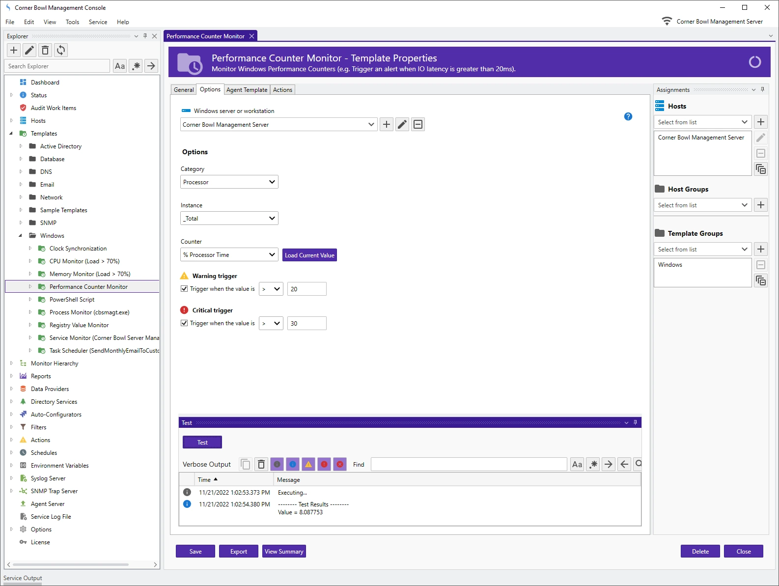 Corner Bowl Internet Server Monitor is an extensive enterprise-class software monitoring and management tool for IT professionals that minimizes downtime by proactively notifying IT when degraded server and application performance is detected. Includes uptime monitoring, website monitoring, email server monitoring, SSL certificate monitoring, database monitoring, Windows server monitoring, SNMP monitoring and much more. Supports Windows, Linux and Docker containers.