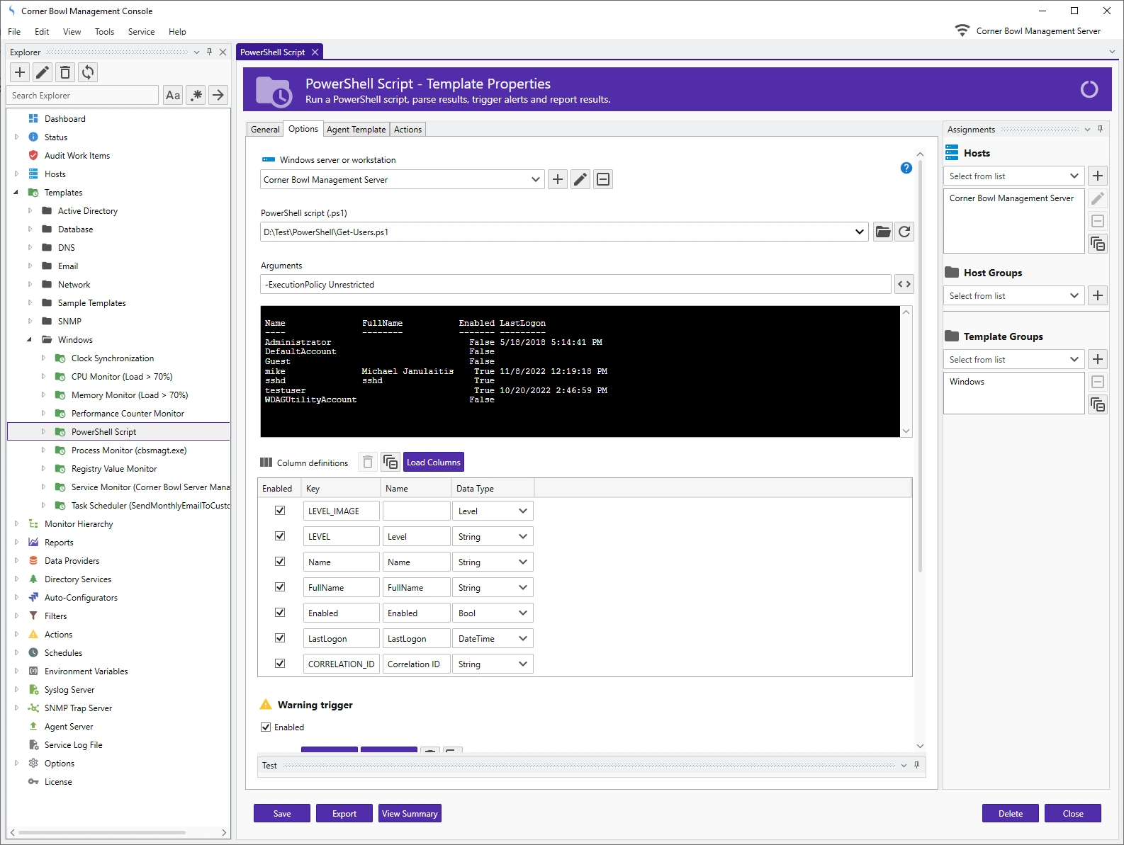 Run a PowerShell script, parse results, trigger alerts and report results.