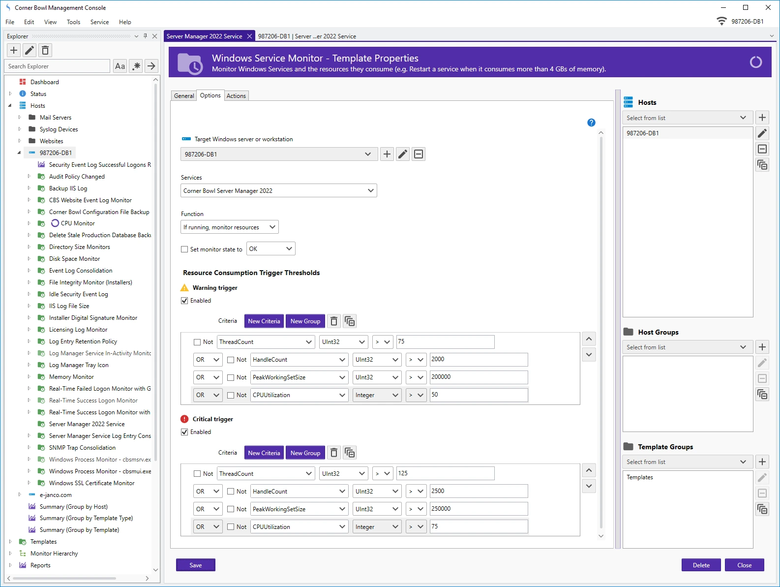 Monitor Windows Processes and the resources they consume (e.g. Restart a process when it consumes more than 4 GBs of memory).