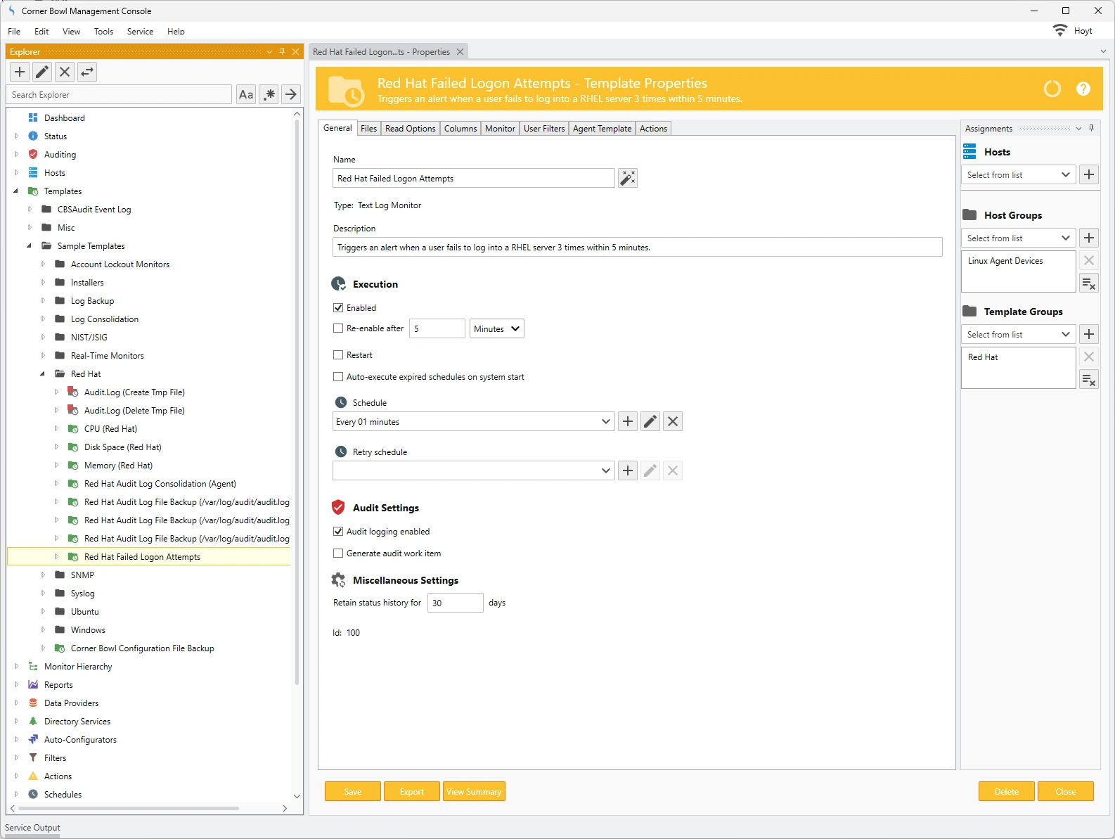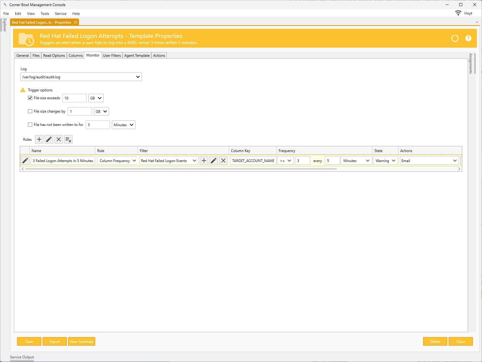 - Apply correlation and frequency rules, for example, get notified when a user logs onto a Linux server then fails to logoff.