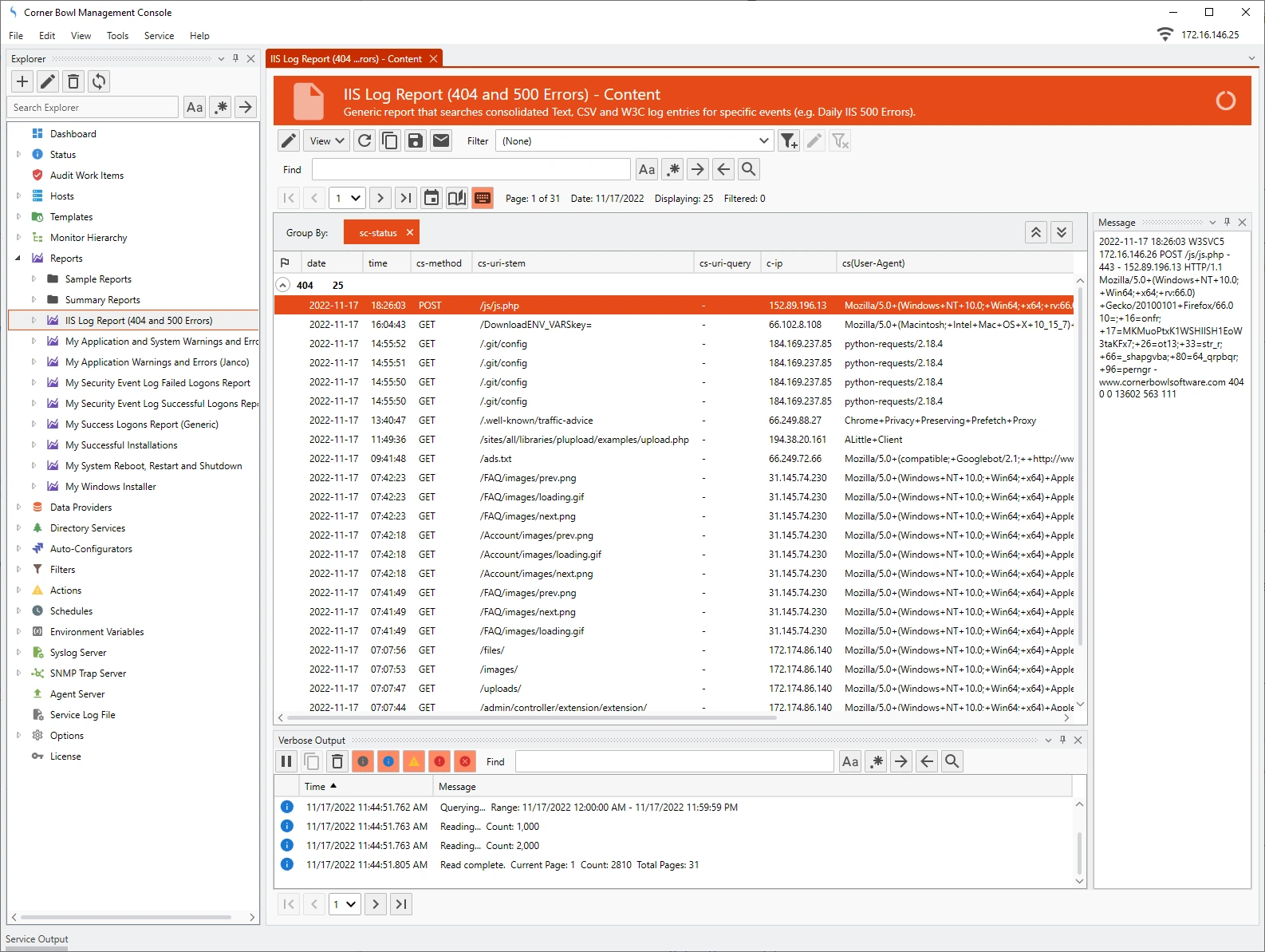 - Schedule daily analysis reports that scan, filter, export and email specific consolidated text log entries.