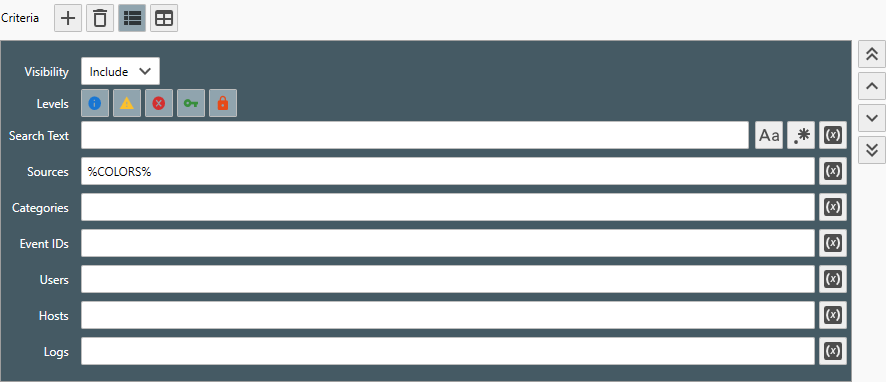 - From any Simple or Complex Filter Properties View, click the Environment Variable