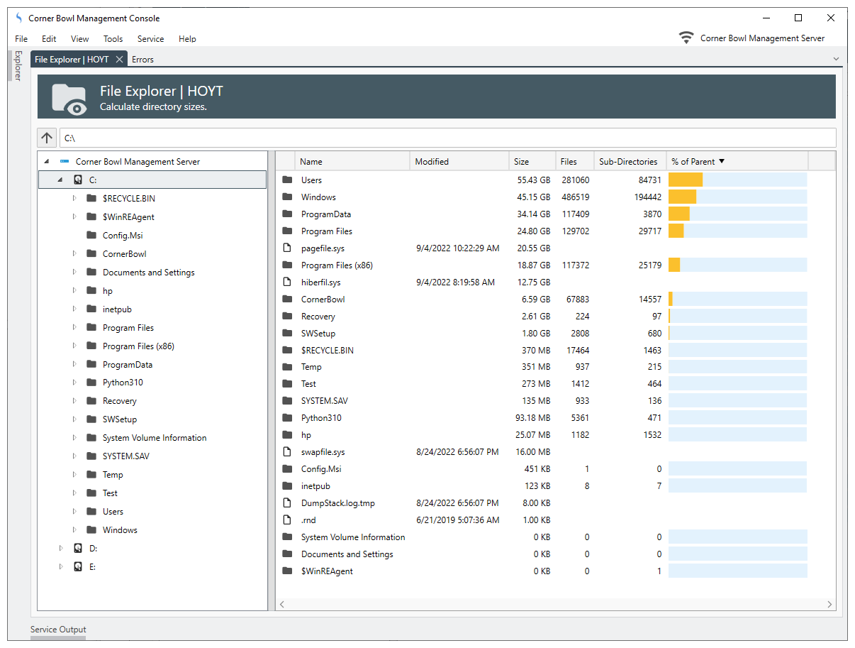 The File Explorer enables users to browse, manage and, most importantly, recursively scan and calculate the size of each sub-directory found in Windows, SSH/SFTP and FTP/S file systems.