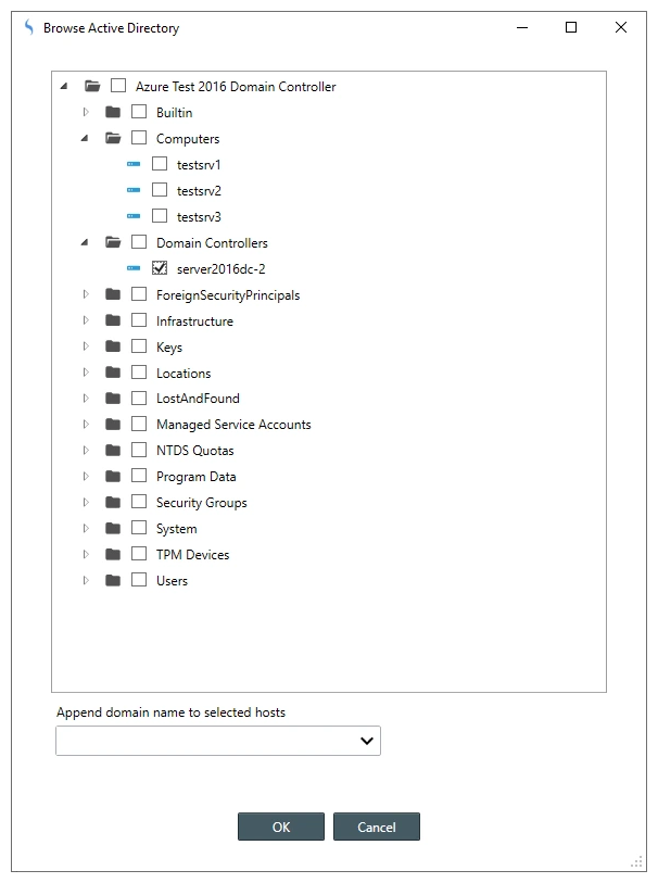 - Use this view to browse and select multiple hosts. then click OK. When added to the Explorer View, each selected host's parent Organizational Unit (OU) is added to the Explorer View underneath the tree node you previously selected, then the hosts added underneath the OU.