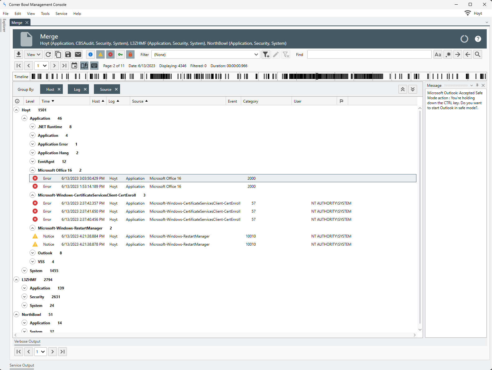 Corner Bowl Server Manager enables users to quickly merge multiple logs into a single view for auditing and analysis.