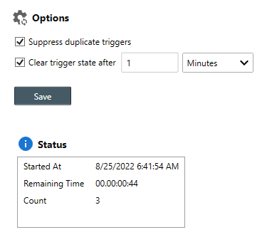 | Remaining | The amount of remaining time before the monitor can trigger actions again. |