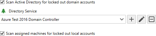 - Use the Scan Active Directory for locked out domain accounts check box to scan Active Directory then use the Directory Service drop-down to select the domain to monitor.
