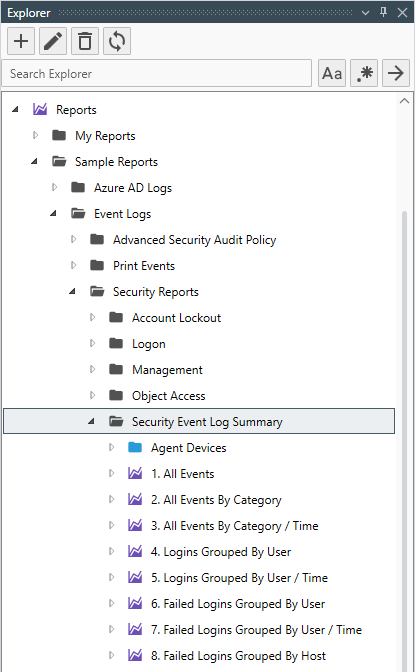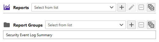 Server Manager includes a sample Collection Report called Security Event Log Summary. This report references a single Report Group called Security Event Log Summary.