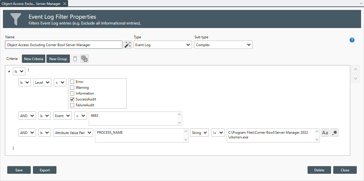 - Report Security Event Log Filters