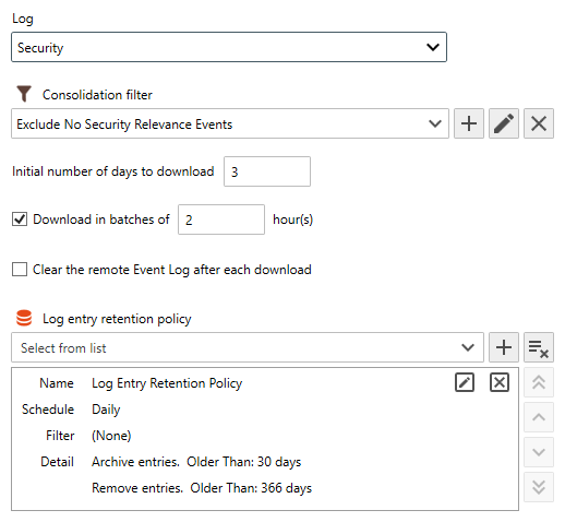 Event Log consolidation is the process of downloading Event Log entries then saving them to the Log Database. The Log Databases are configured under the Explorer View's Data Providers tree node.