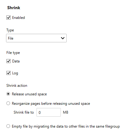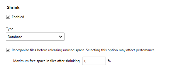 - Use the Enabled check box to enable the database shrink function.