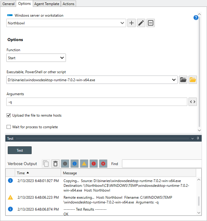 When configured as an agent template, the Task Scheduler Template enables you to upload an installer then execute (e.g. Install an application).